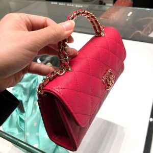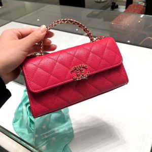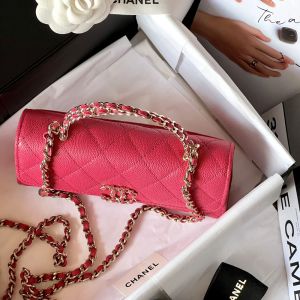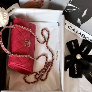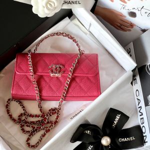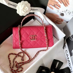 Túi xách nữ Chanel Woc màu hồng đậm trẻ trung trong thiết kế quai cầm hai sợi, logo và dây da được quấn dây xích. Chất liệu da màu đỏ trần trám. Size nhỏ vừa xinh cho các chị em xuống phố, đi dự tiệc hay một buổi hẹn hò lãng mạn.
