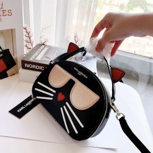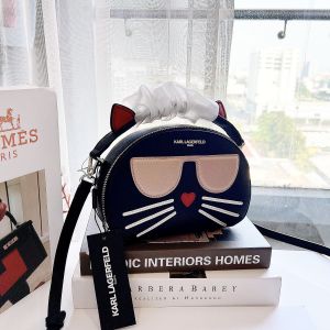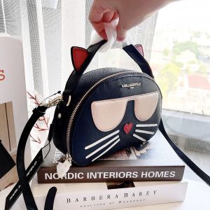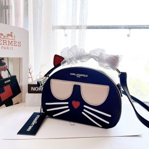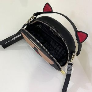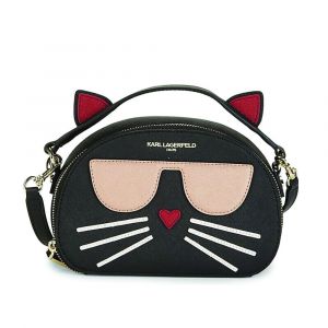 Túi xách Karl Lagerfeld Maybelle Choupette màu đen hoạ tiết mặt mèo năng động, cá tính. Điểm thêm 2 tai mèo màu đỏ cute trẻ trung. Bên trong ngăn rộng rãi, chị em thoải mái đựng đồ nữ trang, điện thoại mỗi khi xuống phố. Chất da saffiano bền đẹp. Kích thước: 22 x 14 x 5cm.