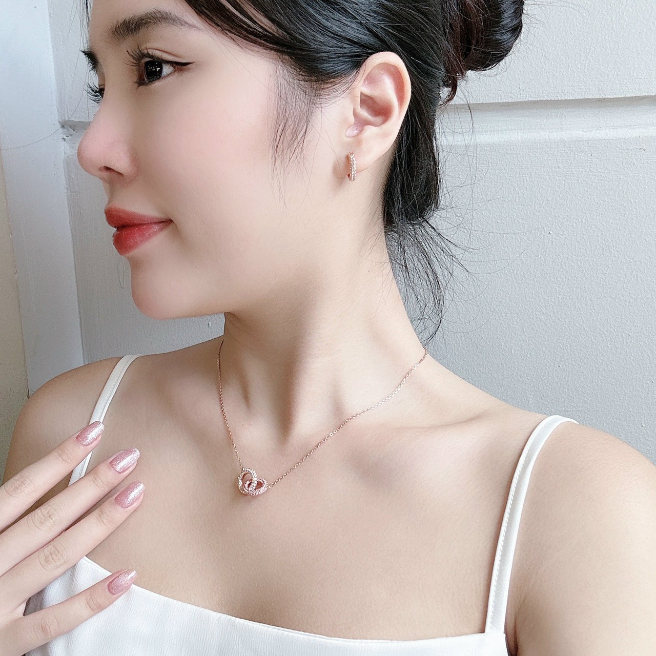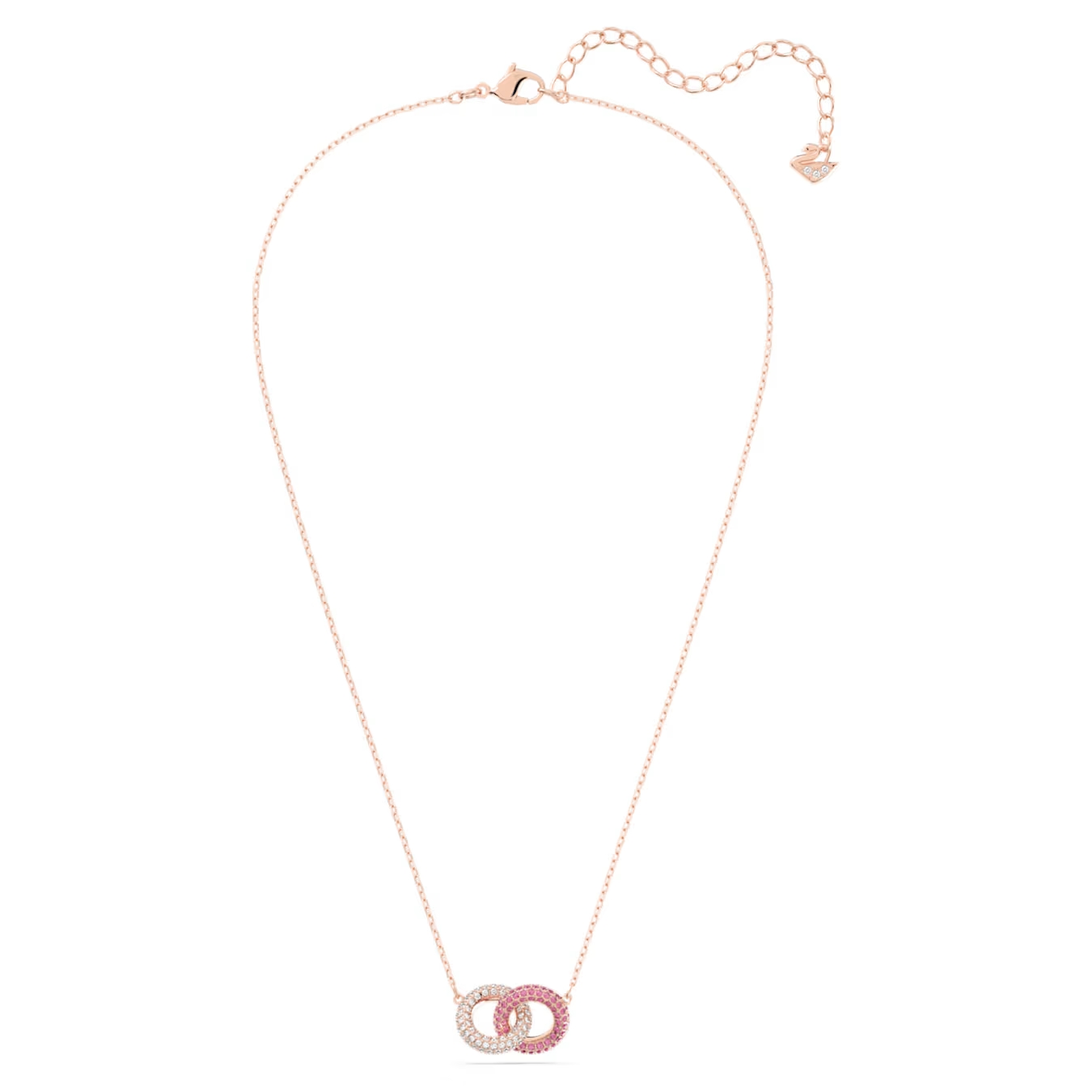 Dây chuyền Swarovski Dextera 5642884 được thiết kế hai vòng tròn màu vàng hồng và màu hồng lồng vào nhau phủ đá pha lê lấp lánh. Khi phối sợi dây Dextera với trang phục của một buổi hẹn hò, một bữa tiệc hay đi làm công sở bạn đều trở nên thật hấp dẫn. Kích thước: 1.9 cm Dây dài: 38 - 42cm điều chỉnh tuỳ theo dài ngắn.