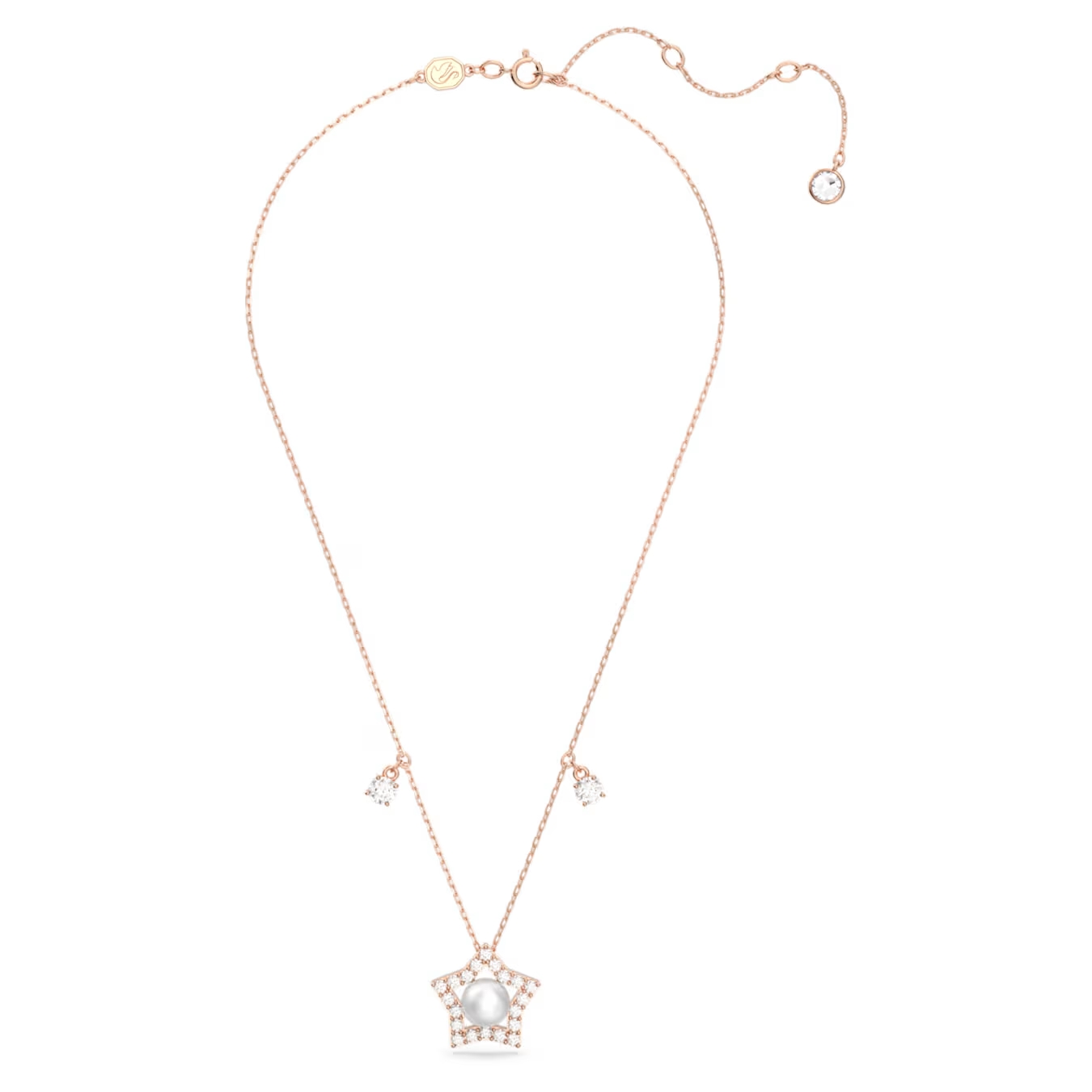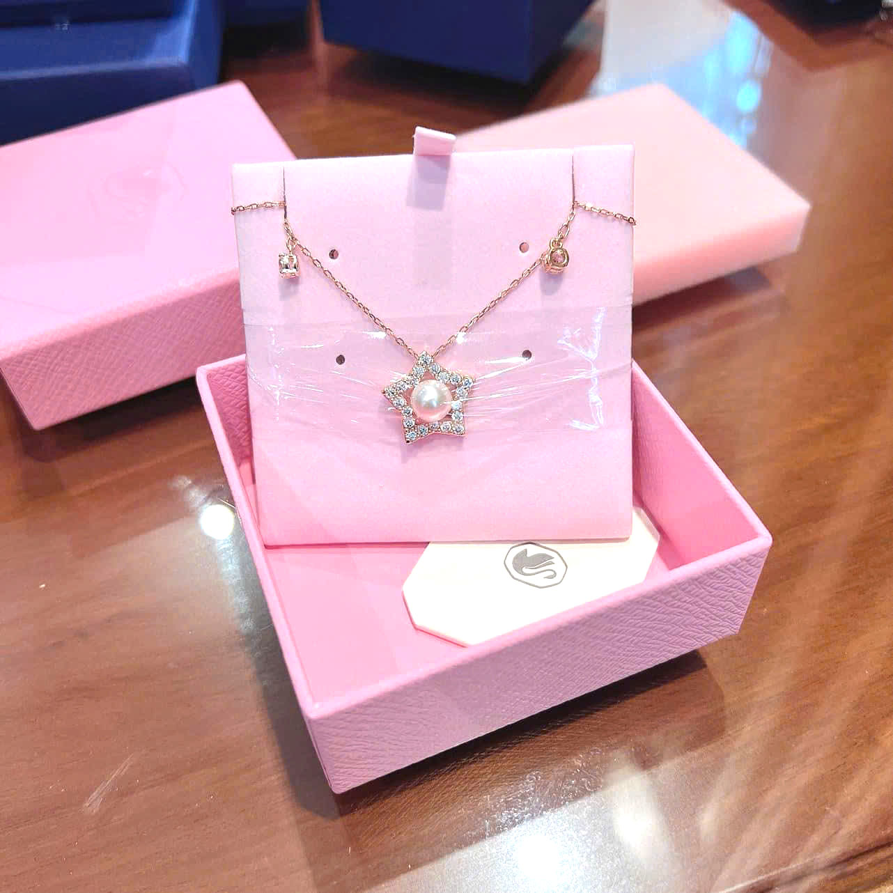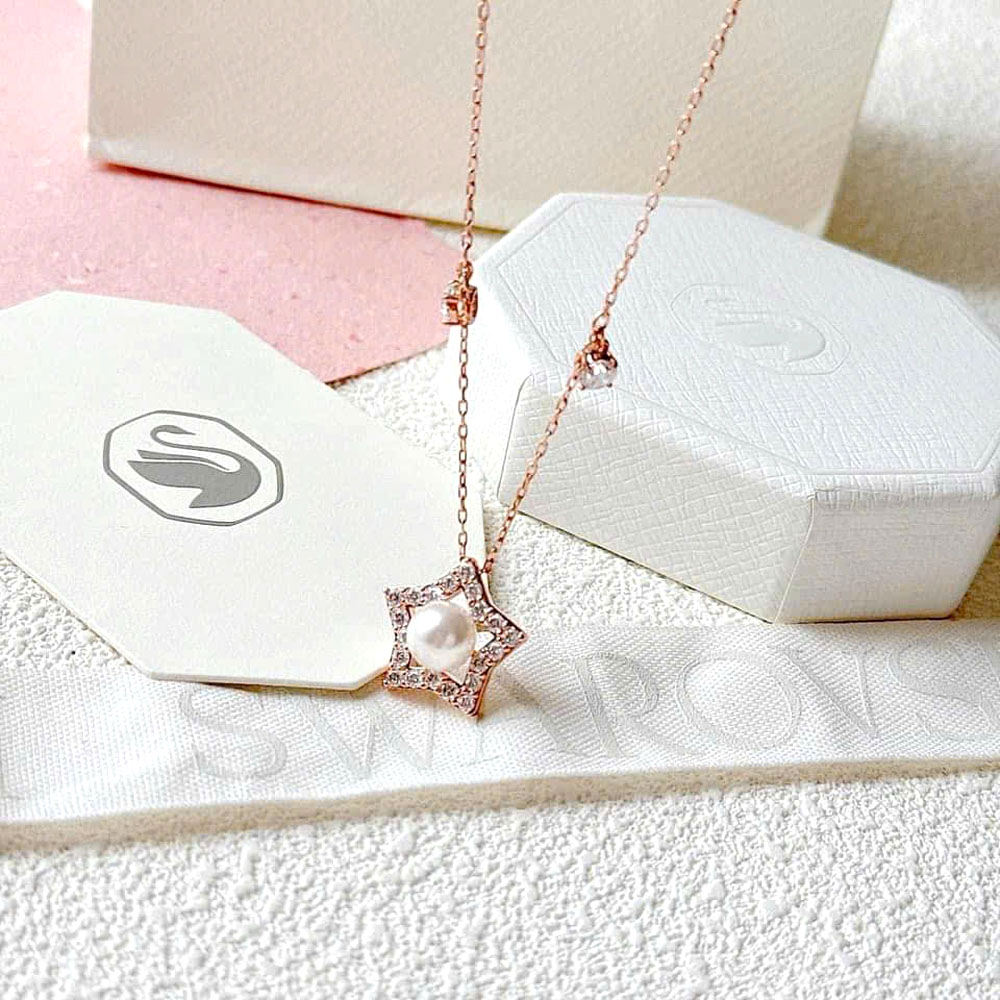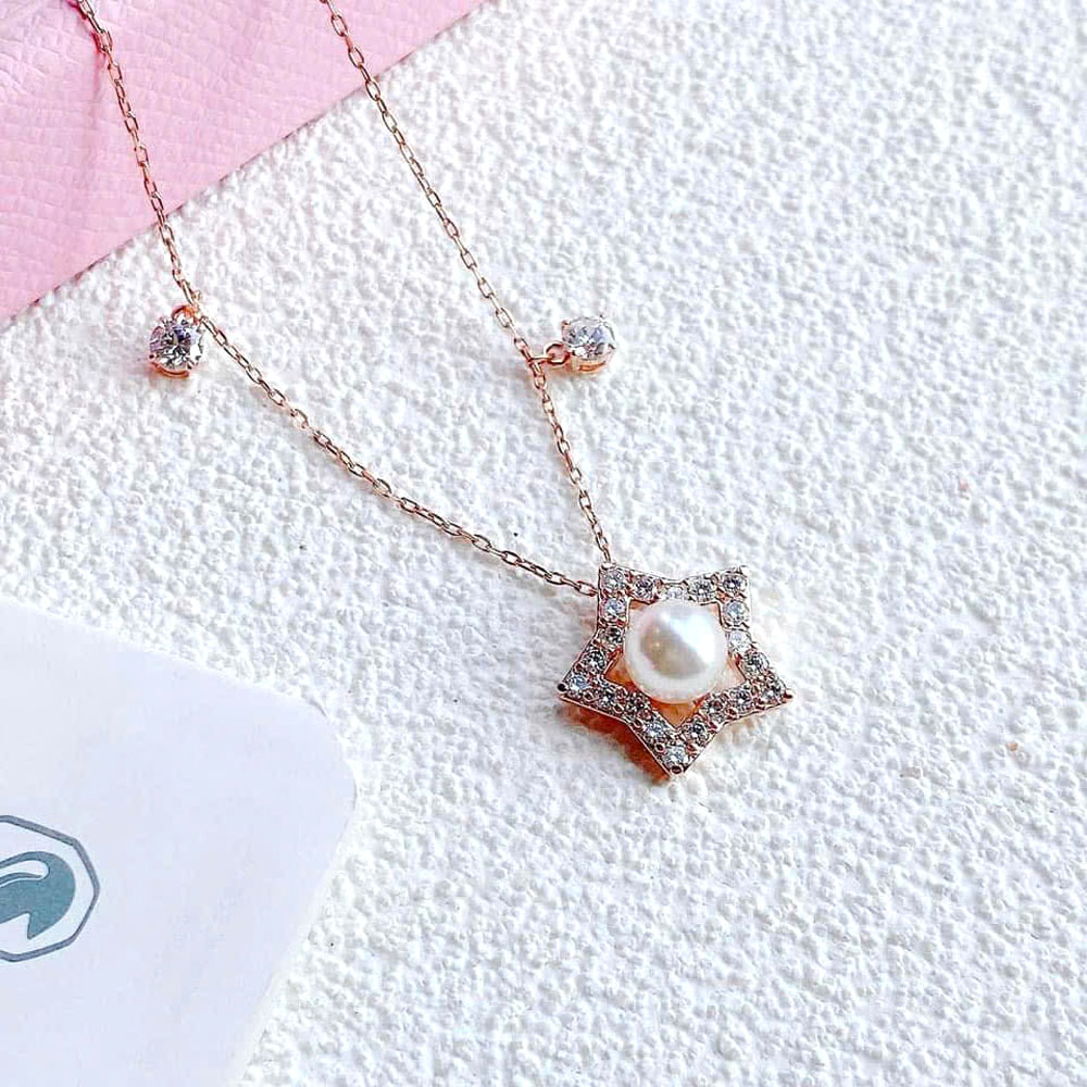 Dây chuyền Swarovski Stella 5645382 là một ngôi sao năm cánh màu vàng hồng nạm pha lê bao quanh một viên ngọc trai sáng không tì vết. Sợi dây sẽ làm cô nàng thật sự quyến rũ khi kết hợp với váy hoặc đồ đi dự sự kiện, văn phòng hay dạo phố. Kích thước: 1.6cm. Dây dài: 38 - 43cm tuỳ chỉnh.