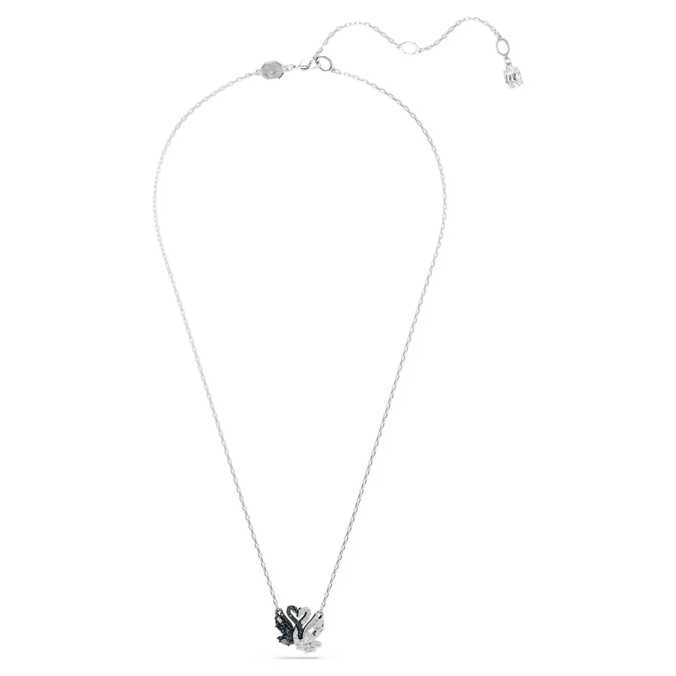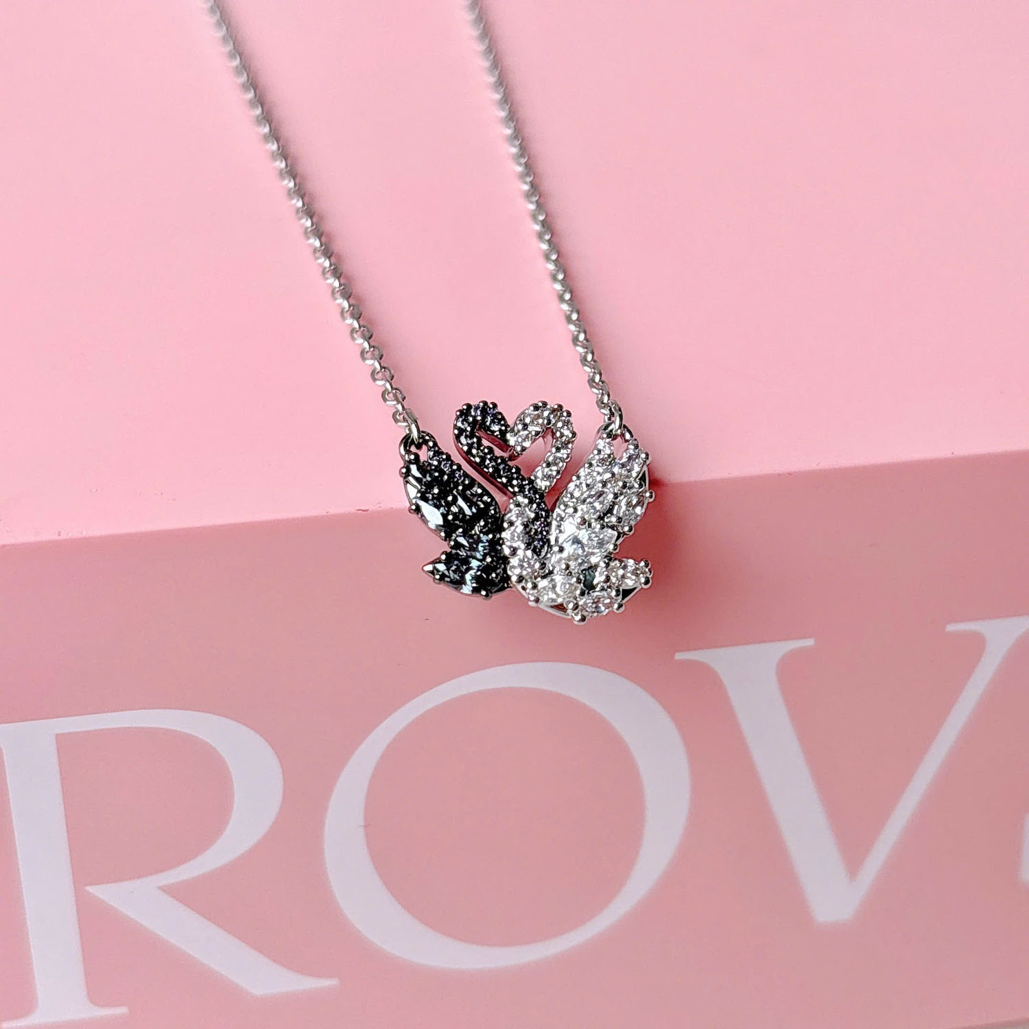 Dây chuyền Swarovski Swan 5705721 tôn vinh vẻ đẹp vĩnh cửu của hãng về tình yêu với biểu tượng 2 con Thiên Nga quấn vào nhau bền vững trên một sợi dây tinh xảo phủ rhodium sáng bóng. Những viên đá Zirconia và pha lê màu đen và màu trắng xếp tinh tế thể hiện vẻ đẹp trường tồn. Kích thước: 1.3 x 1.4 cm. Dây dài: 38 - 45 cm tuỳ chỉnh.
