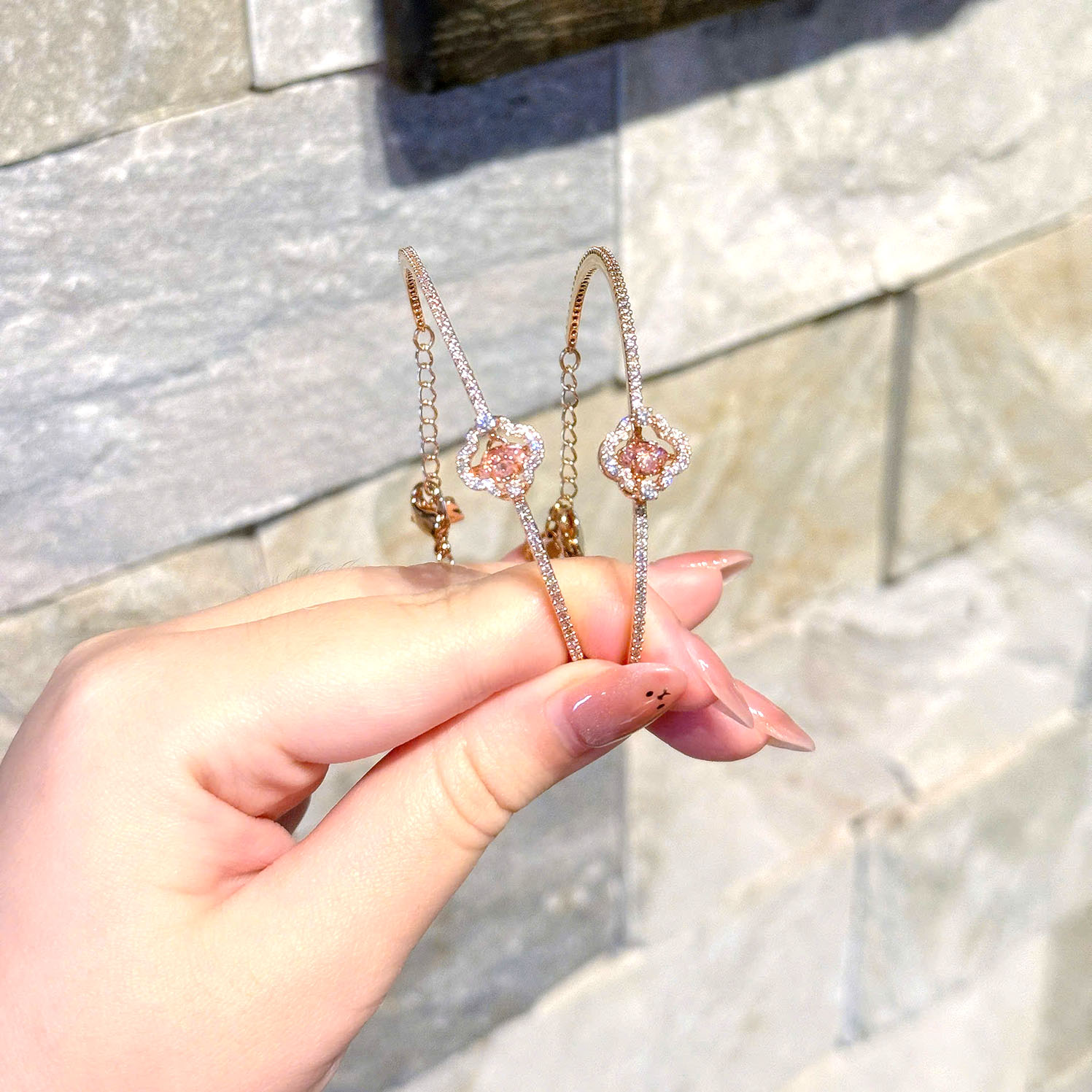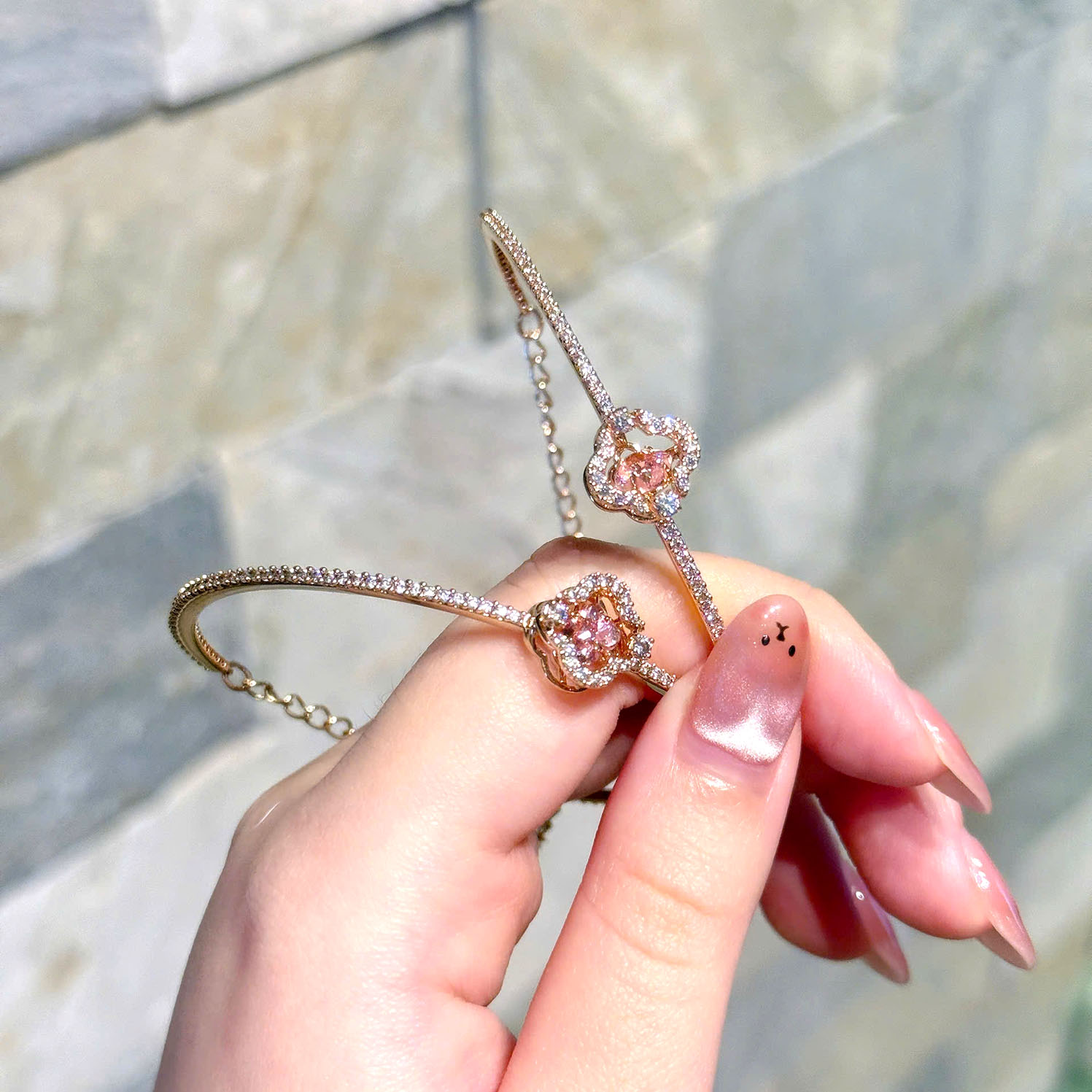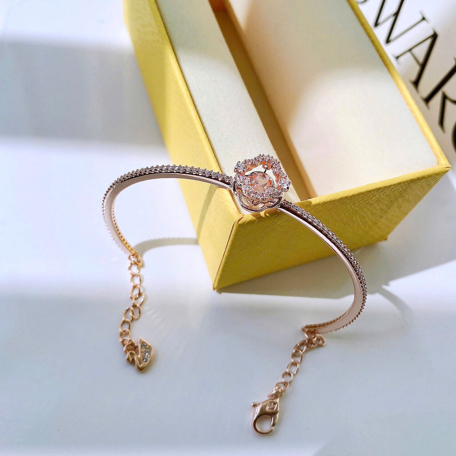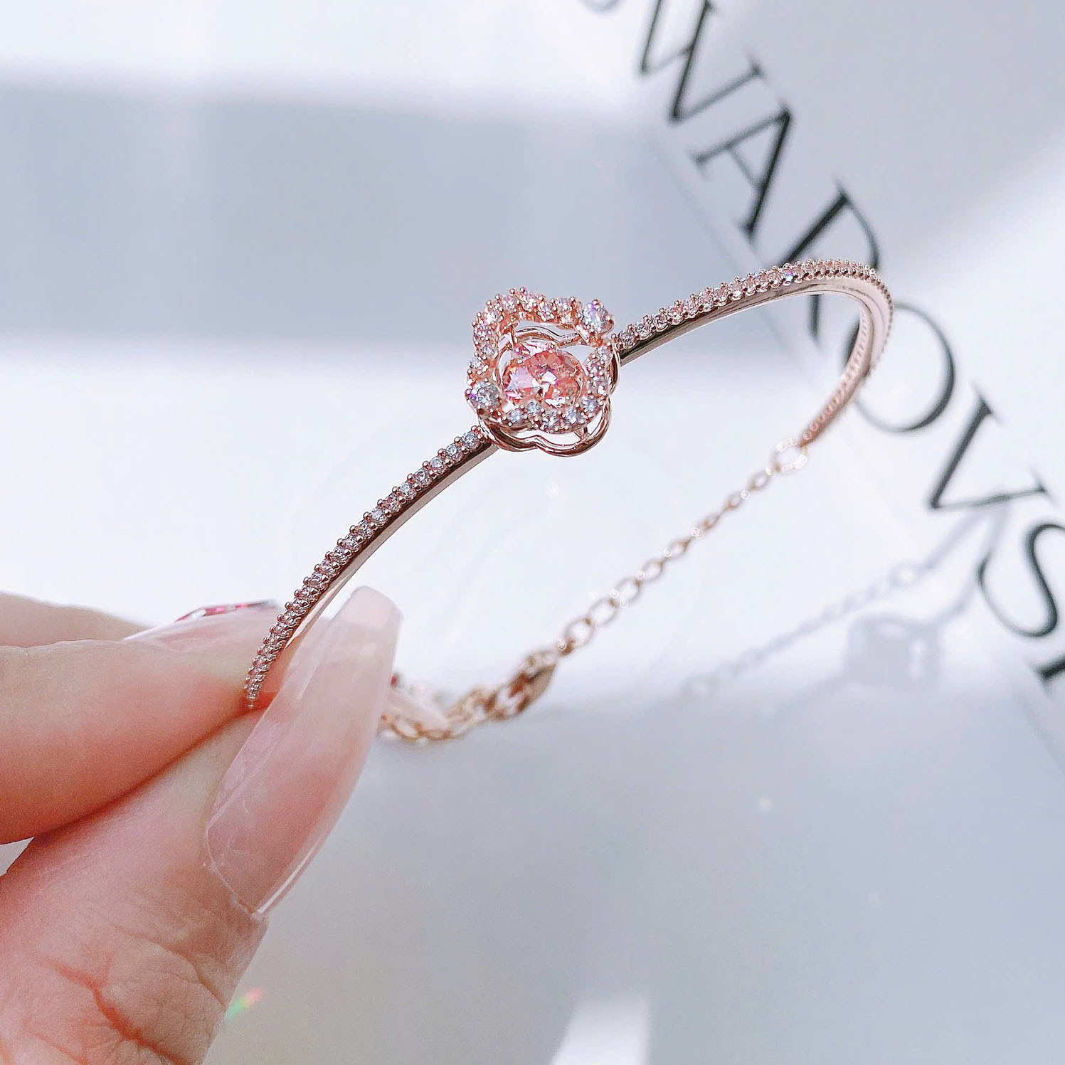 Lắc tay Swarovski Una 5516476 hình bông hoa đính pha lê lấp lánh bao quanh nhuỵ hoa được làm từ đá Zirconia màu hồng dễ thương. Khung vàng hồng nạm pha lê lấp lánh. Kích thước: 17cm. Đoạn dây nối mở 4.4cm vừa với các chu vi cổ tay.