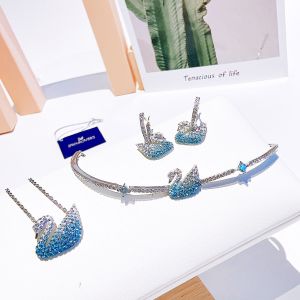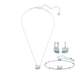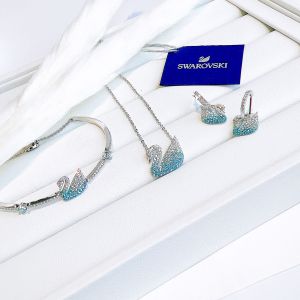 Bộ sản phẩm Swarovski Iconic Swan Thiên Nga màu xanh phối màu bạc trẻ trung, tươi mới. Chị em phối đồ đi dự tiệc, hẹn hò lãng mạn hay dạo phố đều rất xinh. Dây dài 38cm. Bông tai có thể đeo 2 kiểu có hoặc không có Thiên Nga. Lắc tay dây điều chỉnh tuỳ ý.
